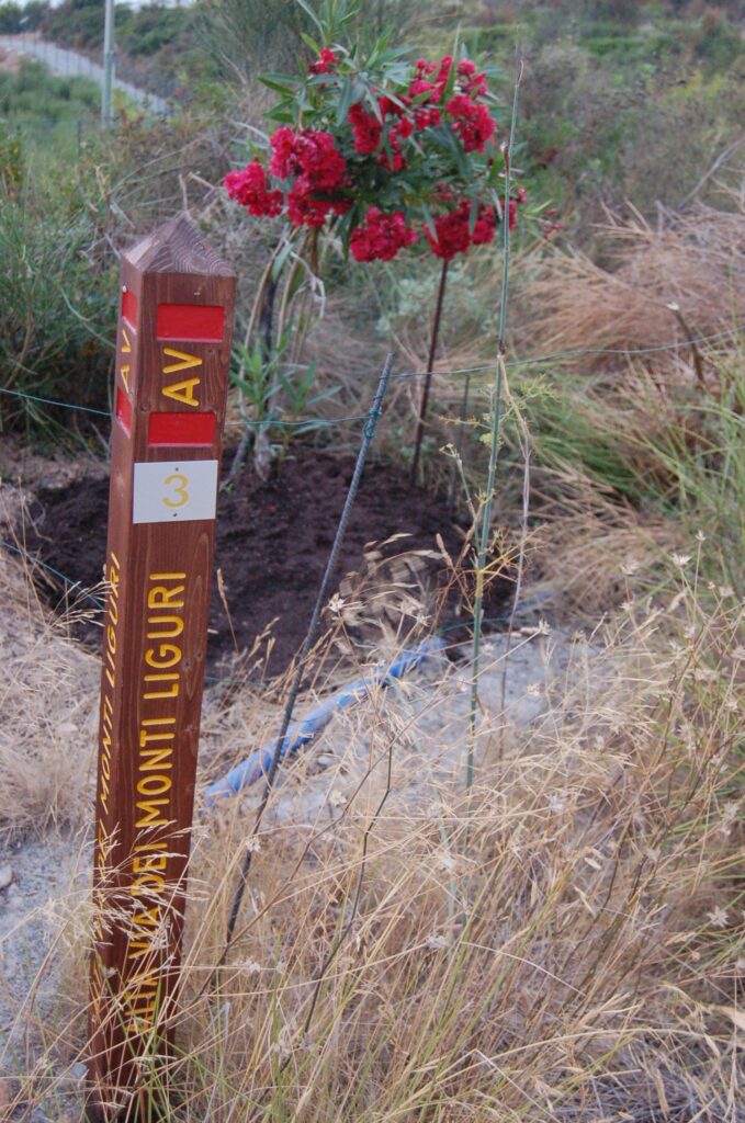 Der Höhenwanderweg Alta Via dei Monti Liguri beginnt unten in Ventimiglia und führt an unserem Grundstück entlang oben auf der Strasse an unserem Kirchlein San Giacomo links vorbei nach Norden. Daneben gibt es in der weiteren Umgebung viele Touren unterschiedlichster Länge und Schwierigkeit.